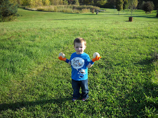 Oliver's party was a blast! We moved the play house and trampoline inside the garage, went on a hayride, picked pumpkins, decorated pumpkins and made glitter balls! Whew!